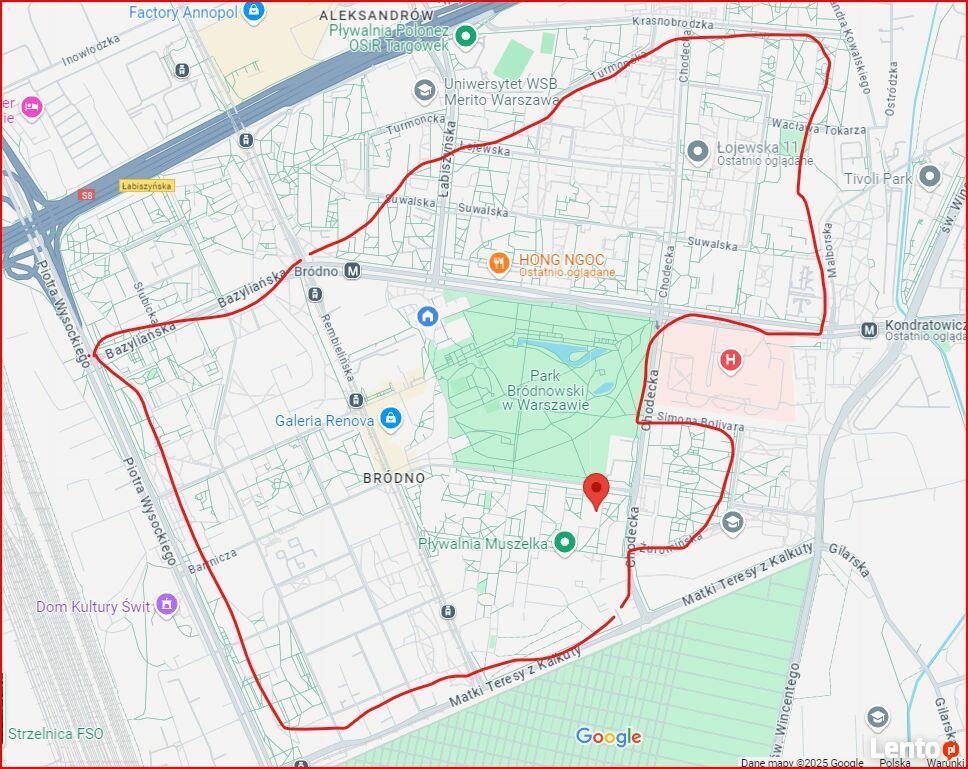 Poszukuję mieszkania do wynajęcia w Warszawie w okolicy stacji metra "Bródno". Najbardziej preferowany przeze mnie rejon, to zakres ulic Kondratowicza - Wysockiego - Rembielińska - Bartnicza - Wyszogrodzka - Chodecka.Moje wyjściowe preferencje: mieszkanie najlepiej dwupokojowe z balkonem i windą.
