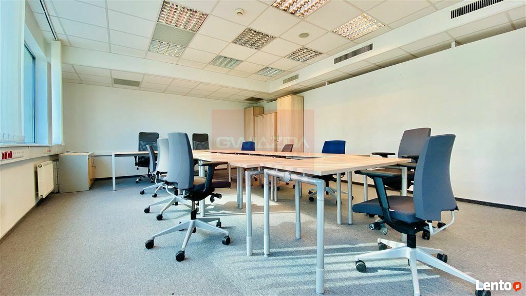 Standard powierzchni: klimatyzacja, podwieszany sufit, kontrola dostępu, okablowanie, otwierane okna, światłowód, czujniki dymu, ochrona recepcja, wykładzina, ścianki działowe.