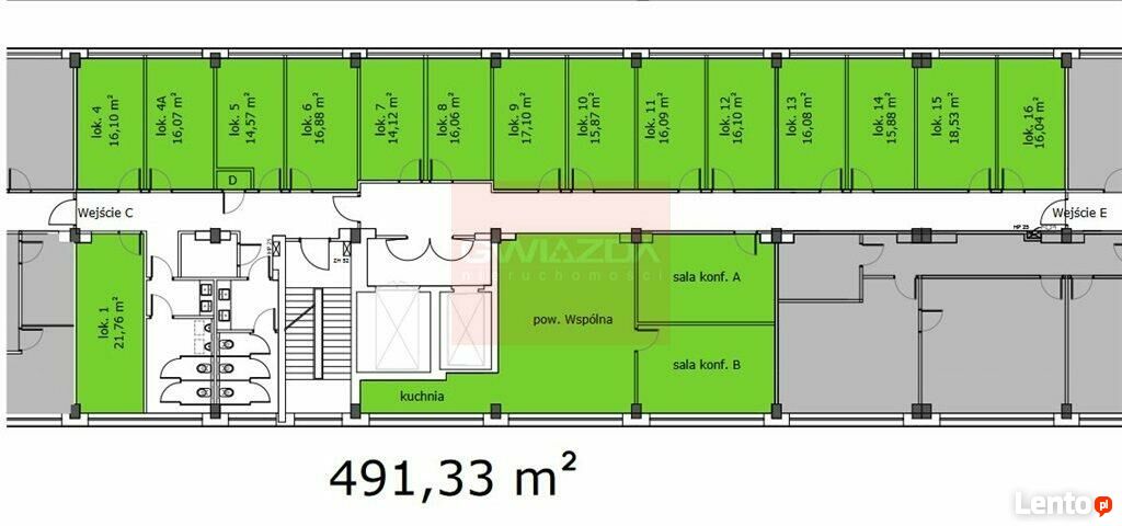 Do wynajęcia powierzchnia biurowa 495 mkw. na piętrze trzecim w układzie gabinetowym.