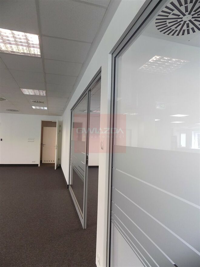 Biura w dobrym standardzie m. in. klimatyzacja, podwieszany sufit, okablowanie telefoniczne, komputerowe i elektryczne, floorboxy, otwierane okna, ochrona, kontrola dostępu, recepcja, kable światłowodowe, wykładzina, czujniki dymu, podział powierzchni ściankami.