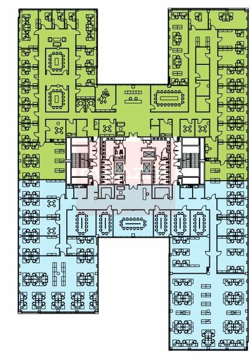 Powierzchnia piętra to około 2500-2700 mkw. Wysokość pomieszczeń to 3 m. od podniesionej podłogi do podwieszanego sufitu.