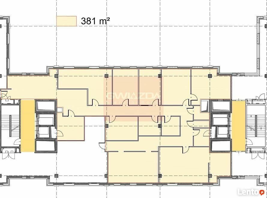 Oferowana powierzchnia może być wynajęta jako open space lub w formie oddzielnych gabinetów.