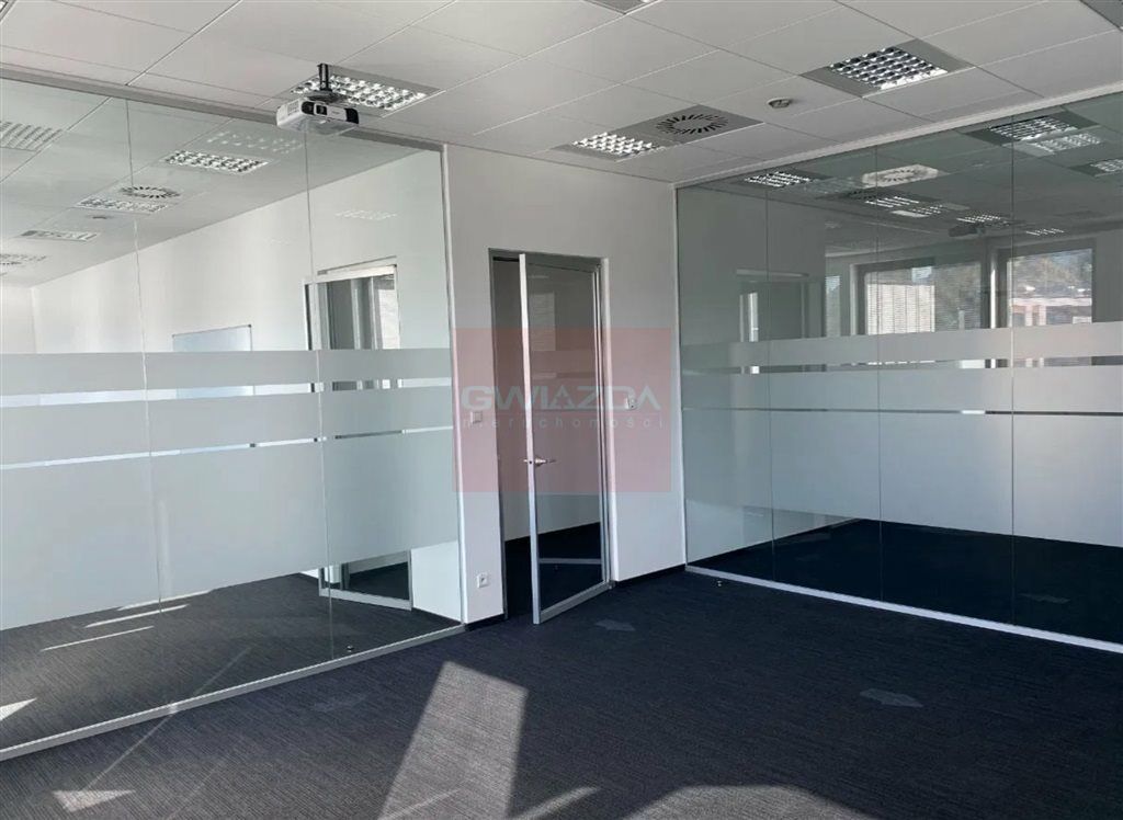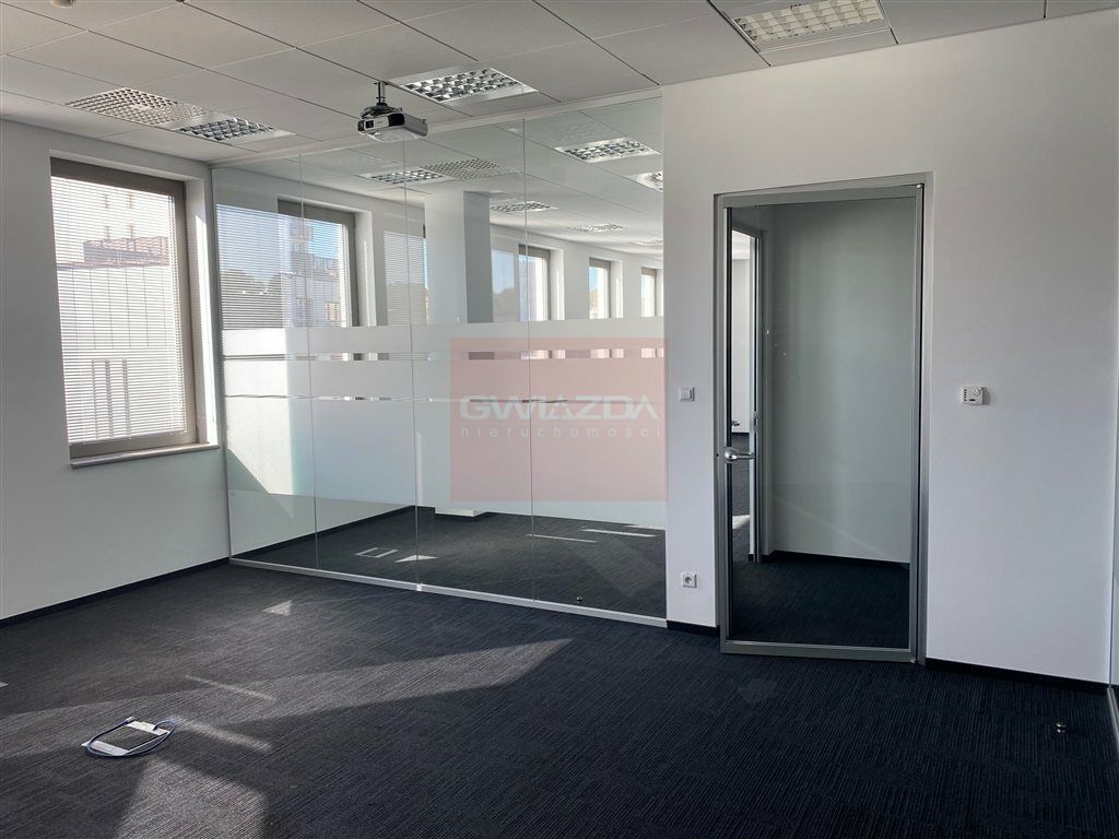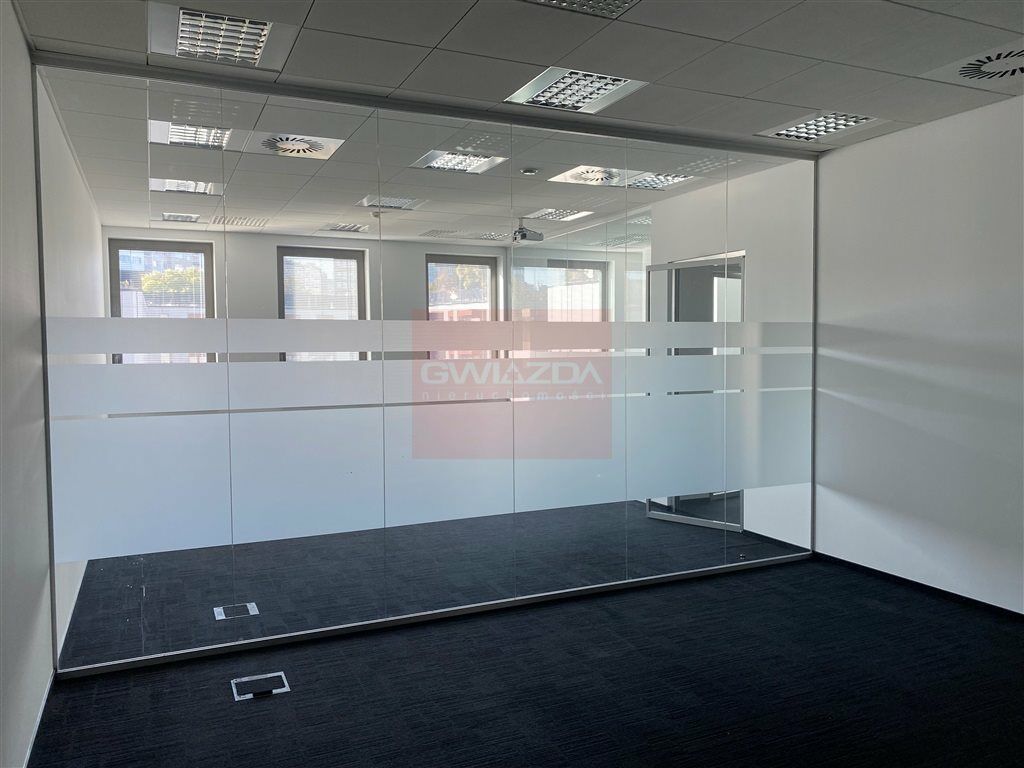 Biuro jest w ładnej zabudowie szklanej, na czwartym piętrze.