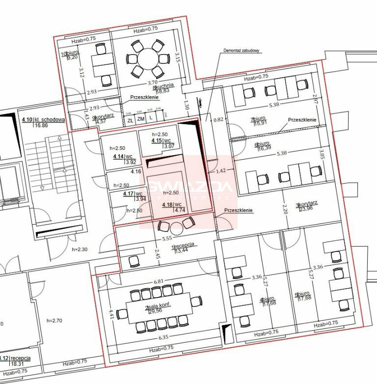 Centrum, Plac Konstytucji.Do wynajęcia powierzchnia biurowa 224 mkw. netto (237 mkw. brutto) na czwartym piętrze.