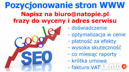 Napisz na emaila @ lub przez formularz kontaktowy napisz adres swojej strony internetowej oraz przykładowy wykaz fraz do pozycjonowania.