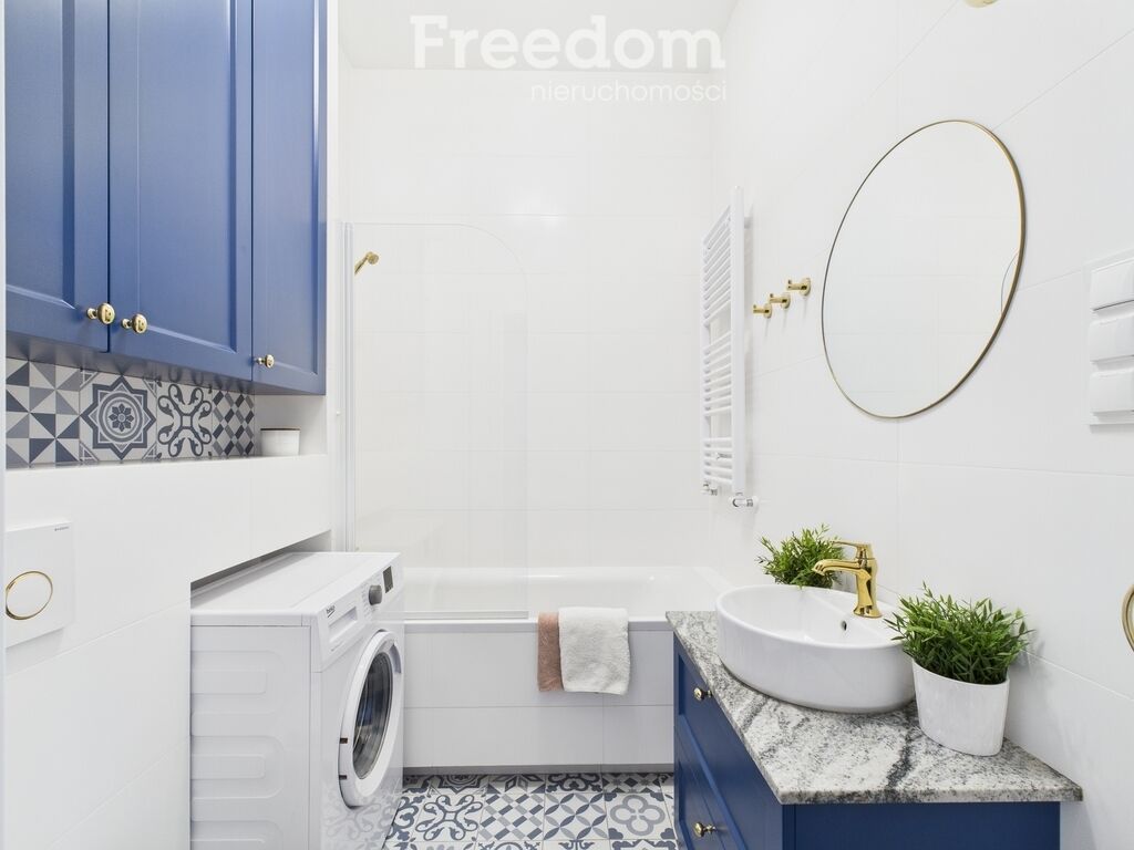 Łazienka (4 m2): Stylowo zaprojektowana z niebieską zabudową,