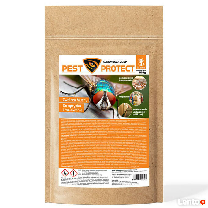 Proszek na muchy do oprysku, malowania.Preparat w postaci koncentratu w proszku Agromusca 20SP PEST Skuteczny i sprawdzony środek biobójczy przeznaczony do zwalczania much w pomieszczeniach inwentarskich, użyteczności publicznej i magazynach.