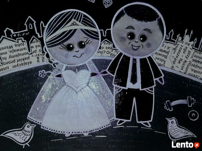 Witam,jestem absolwentka warszawskiej ASP,a oto kolaże jakie wykonuje na specjalne zamówienie,jest to oryginalny prezent ślubny,wielkość ok 18na 18cm,więcej moich prac znajduje się na blogu:ula-armada.blogspot.com,zapraszamSprawdź zainteresowanie tym ogłoszeniem