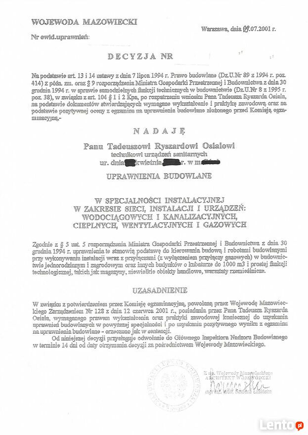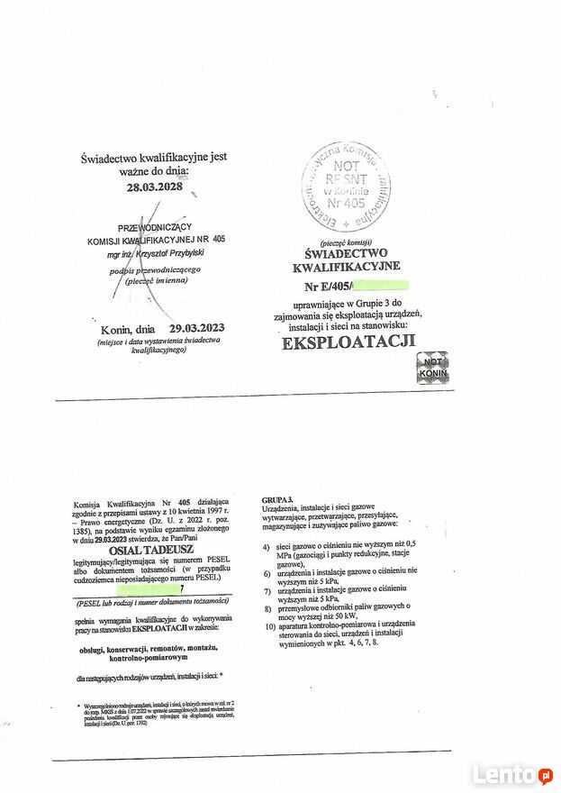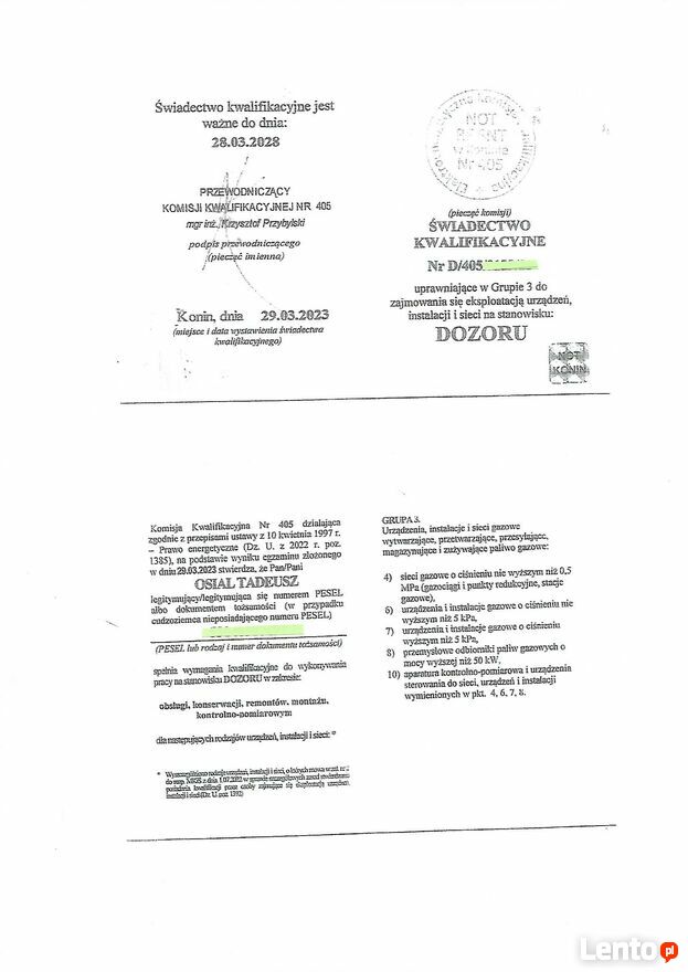 Wykonuję próby szczelności instalacji gazowych w budynkach, potrzebne do GAZOWNI w celu podpisania umowy na dostawę gazu. Do NADZORU BUDOWLANEGO na uzyskanie zgody na użytkowanie budynku. Do ubezpieczenia budynku . Wystawiam potrzebny protokół.Posiadam UPRAWNIENIA BUDOWLANE kierownika budowy instalacji gazowych. Świadectwo kwalifikacyjne DOZORU i Eksploatacji. Zapraszam.