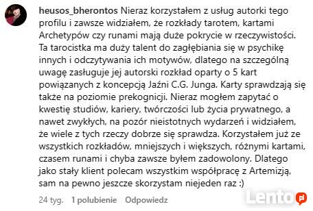Posiadam dużo pozytywnych opinii! Te, które widzisz na zdjęciach w tym ogłoszeniu (jeśli chcesz je zobaczyć, przewiń w prawo od zdjęcia głównego) to tylko skromna część. Jeszcze ani razu nie dostałam informacji, że moje odczyty się nie sprawdziły, choć zawsze powtarzam, że tarot nie jest 100% wyrocznią, bo każdy z nas ma wpływ na własną przyszłość i rzeczywistość! Mój tarot jest po to, aby wskazać Ci drogę, a nie przestraszyć :)