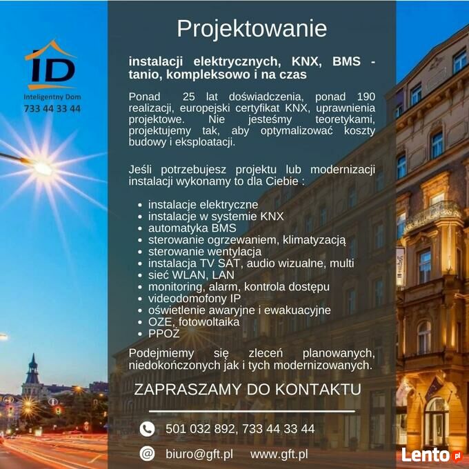 Projektowanieinstalacji elektrycznych, KNX, BMS - tanio, kompleksowo i na czas