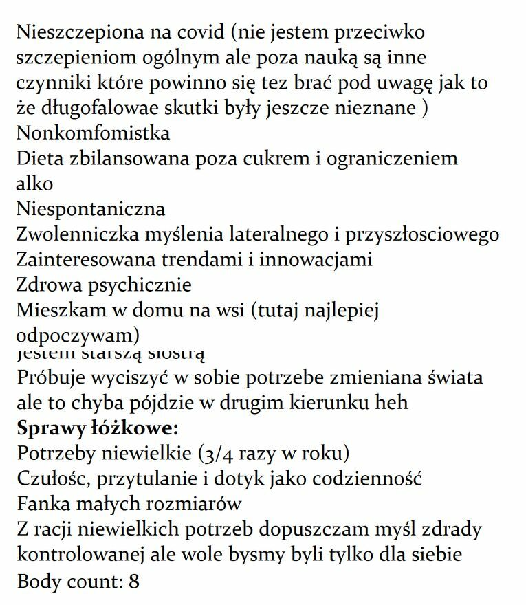 Szukam kogoś z kim będziemy się wspierać w codziennosci i w pomysłach. Bardziej celuje w związek ale przyjaciol też mam deficyt. Moge Ci towarzyszyć na co dzień i wykonywać prace zdalną.