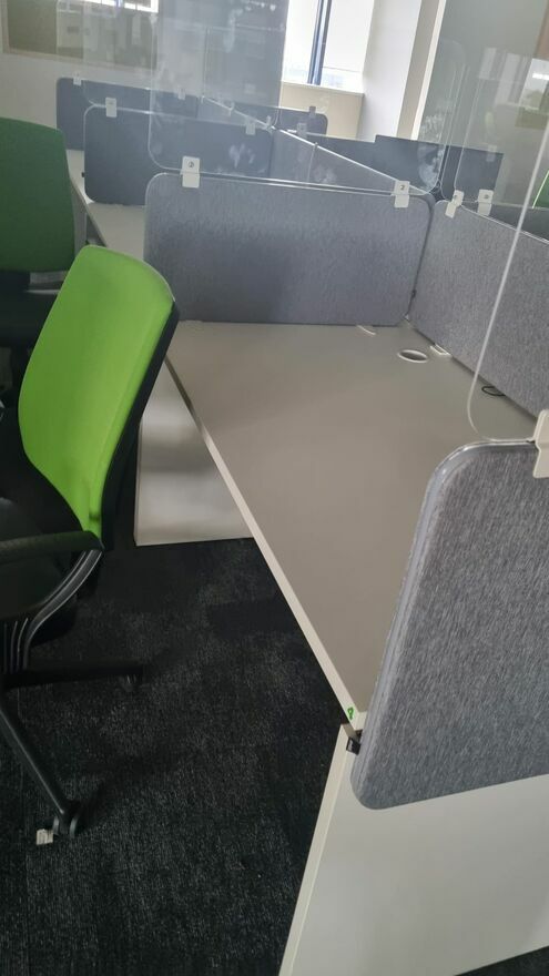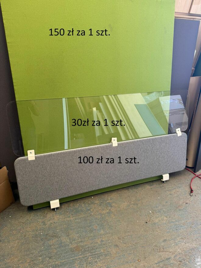 Przegroda, blenda pleksa oddzielająca blaty biurka.