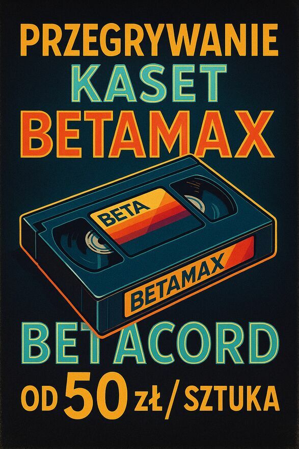 Przenieś swoje wspomnienia w nową erę cyfrową!Oferujemy profesjonalne przegrywanie kaset Betamax i Betacord już od 50 zł za sztukę. Twoje nagrania wideo zachowają najwyższą jakość obrazu i dźwięku – bez zniekształceń, szumów czy kolorowych pasów.