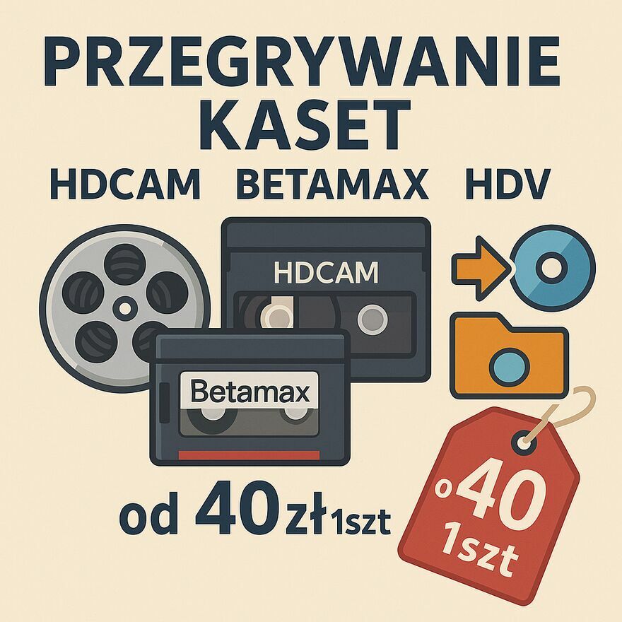 Profesjonalne Przegrywanie Kaset od 40 zł/szt.!Masz cenne nagrania na Betamax, HDCAM czy HDV? Chcesz je zachować w cyfrowej jakości i odtworzyć na nowoczesnych urządzeniach? Skorzystaj z naszej oferty: