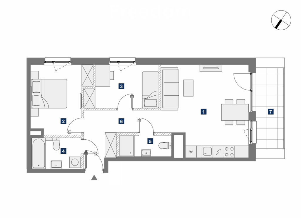 Komfortowe mieszkanie 3 pokoje o powierzchni 59.42m² z balkonem.