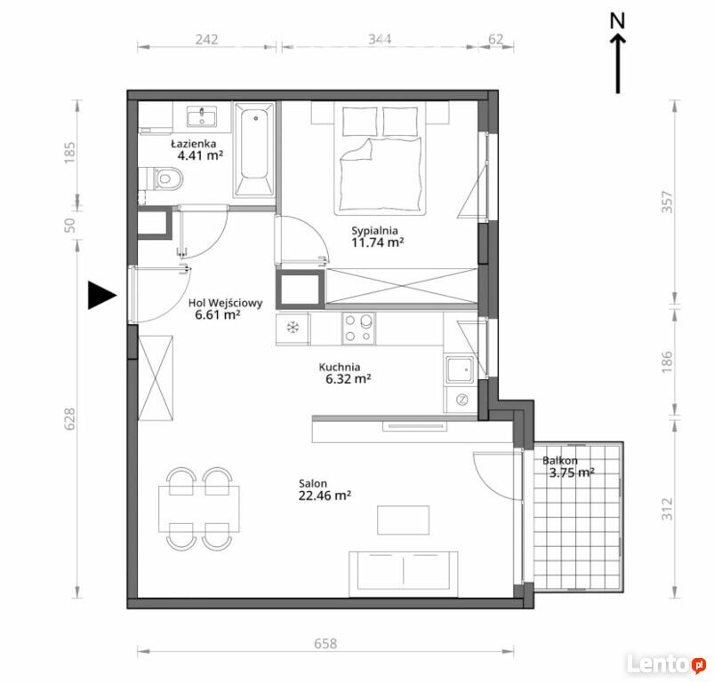 - salonu - 22,46 m2