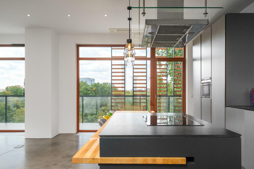Przestronny, słoneczny apartament na Mokotowie z pięknym widokiem naPark im. Stanisława Dygata. Usytuowany na ostatnim piętrze, w