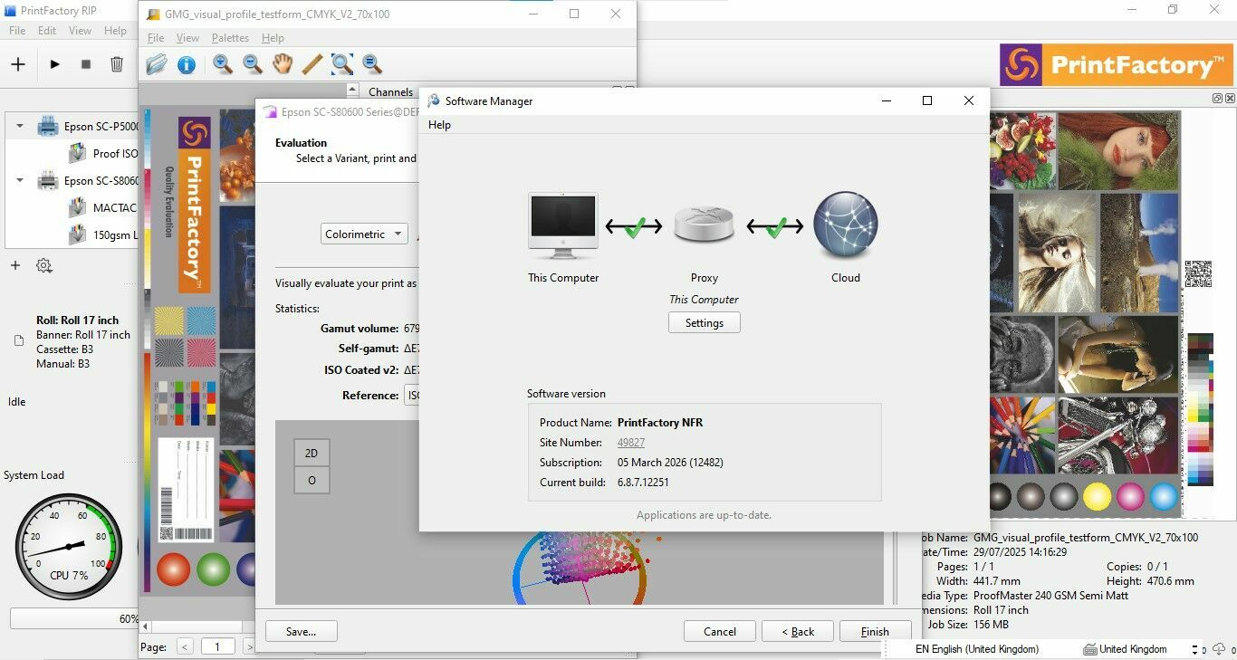 - za pomocą internetowej aplikacji Cloud - możecie Państwo we własnym zakresie kontrolować waszą licencję, przebieg pracy urządzeń w waszej firmie, zlecenia, pobierać raporty certyfikacji proof, szacunkowo określić także koszty tuszu i materiałów używanych do produkcji,