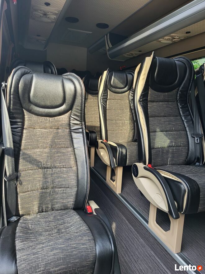 Przewóz osób na każdą okazję Mercedes Tourismp 61+1+1, Mercedes Sprinter 519 20+1,Mercedes Sprinter 319 8+1 na terenie kraju i UE. Posiadamy licencję na międzynarodowy przewóz osób.Busy wersja turystyczna w najbogatszym wyposażeniu obecnie dostępnym na rynku m.in. podwójnie przyciemniane szyby, klimatyzacja indywidualna dla każdego pasażera,fotele rozkładane typu lotniczego z 3 punkowymi pasami bezpieczeństwa,indywidualne sterowanie oświetleniem i głośnikami, automatycznie rozsuwane drzwi boczne,światło do jazdy nocne, duży pogłębiany bagażnik, półki na bagaż podręczny, najnowsze systemy gwarantujące komfort i bezpieczeństwo,niezależne ogrzewanie postojowe,DVD,TV cyfrowe, dwa monitory, mikrofon itp.