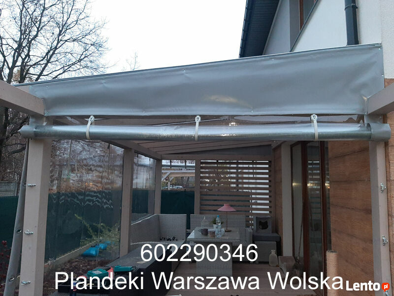 Całoroczna, mrozoodporna osłona na ścianę, bok tarasu. Podnoszona, rolowana, zapinana u góry na paski folia przezroczysta na zimę. Zabudowa tarasów z plandeki. Plandeki altankowe na wymiar Warszawa.Sprawdź zainteresowanie tym ogłoszeniem