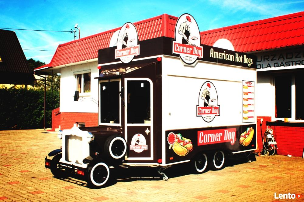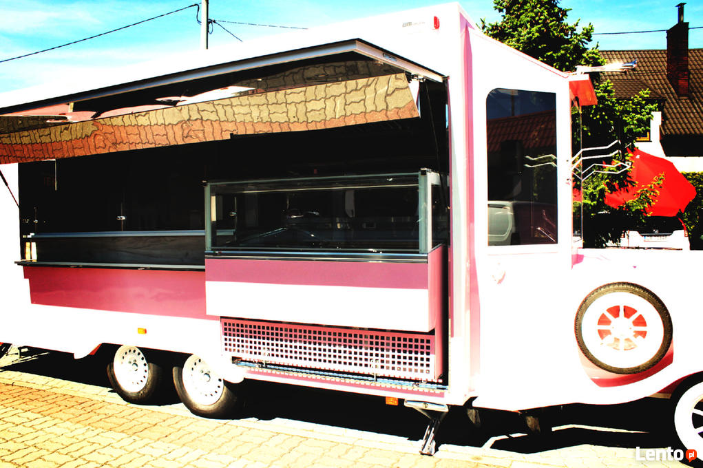 Przyczepa gastronomiczna stylizowana na pojazd retro! Hit sezonu Food truckStylowa zabudowa handlowa o wymiarach całkowitych 5700x2300x2300