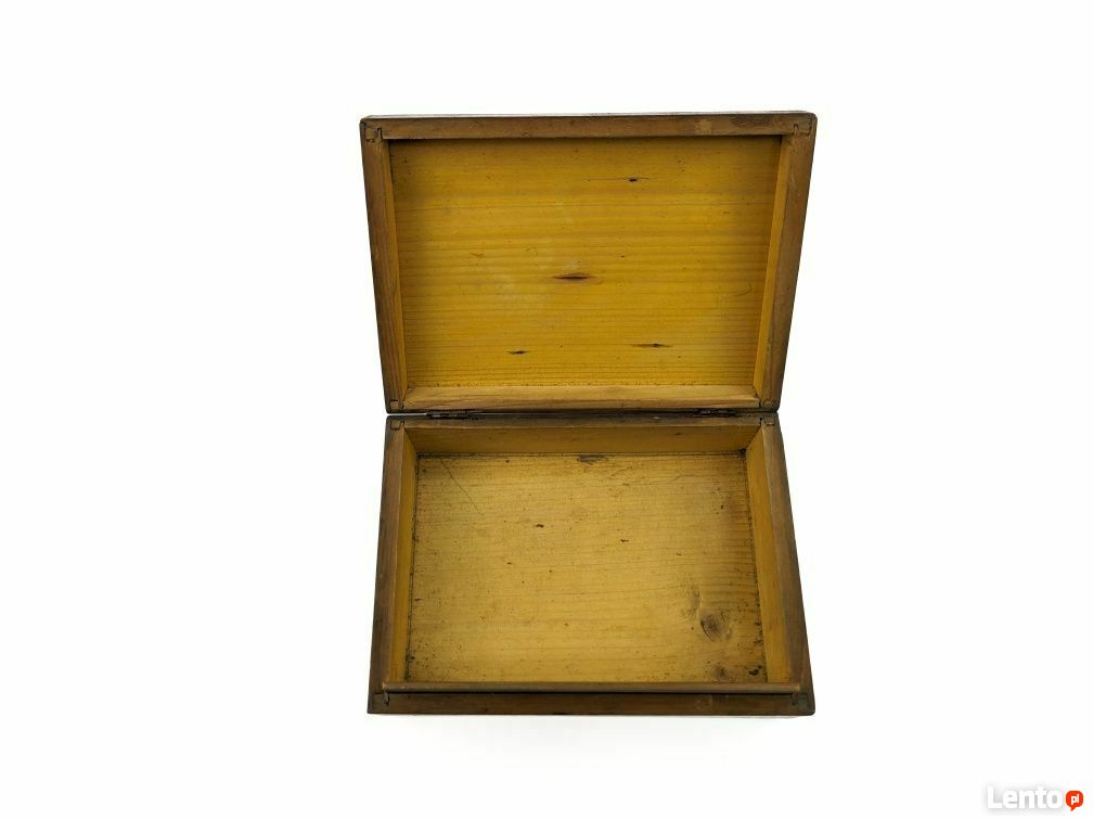 Pudełko drewniane rzeźbione, brak cech producenta, jak i daty produkcji. Wymiary: 20cmx14cm, wysokość 7cm. Pudełko do renowacji, rozwarstwienie przy jednym z zawiasów.Sprawdź zainteresowanie tym ogłoszeniem
