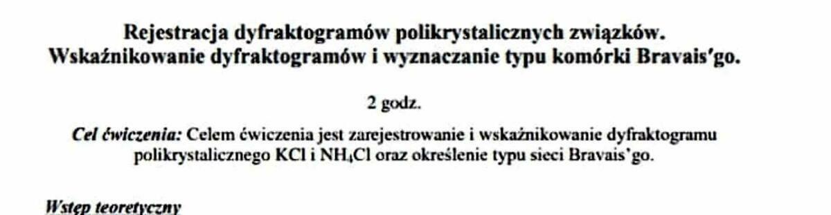 "Rejestracja dyfraktogramów polikrystalicznych związków. Wskaźnikowanie dyfraktogramów i wyznaczanie typu komórki Bravais′"