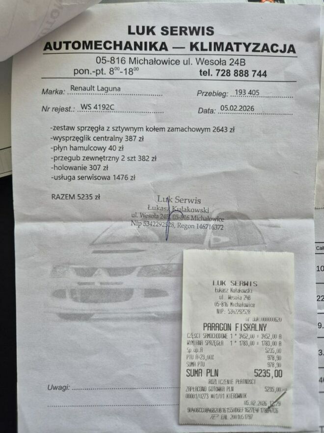 - sprzęgło + wysprzęglik (faktura na 5235pln)