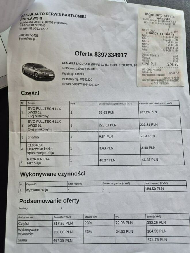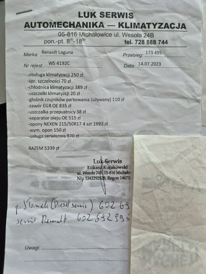 - klimatyzacja, chłodnica klimatyzacji, czujniki parkowania, zawór EGR, nowe opony NEXEN (faktura na 5339pln)