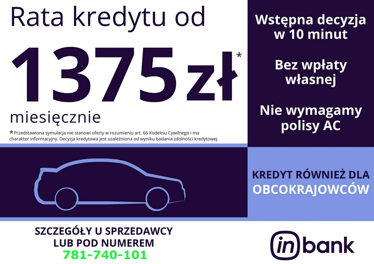 w ciągu jednego dnia załatwimy formalności finansowe i odjedziesz samochodem bez powtórnego przyjazdu po odbiór samochodu *o szczegóły takiego zakupu zapytaj sprzedawce przed przyjazdem