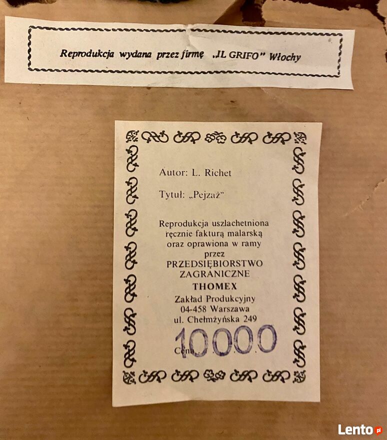 Do sprzedania ładnie wykonana reprodukcja, uszlachetniona ręcznie fakturą malarską, oprawiona w brązową ramę.Autor: Leon Richet (1843-1907)
