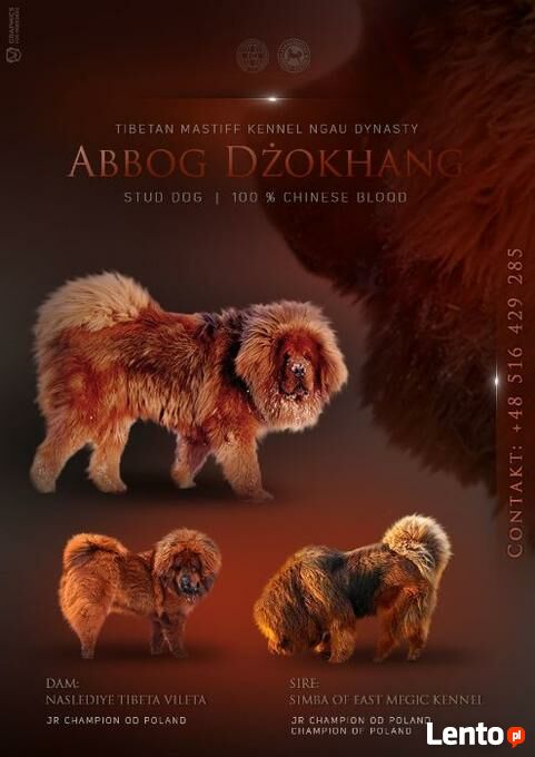 Reproduktor Mastif Tybetański czerwony 100% chińska krew