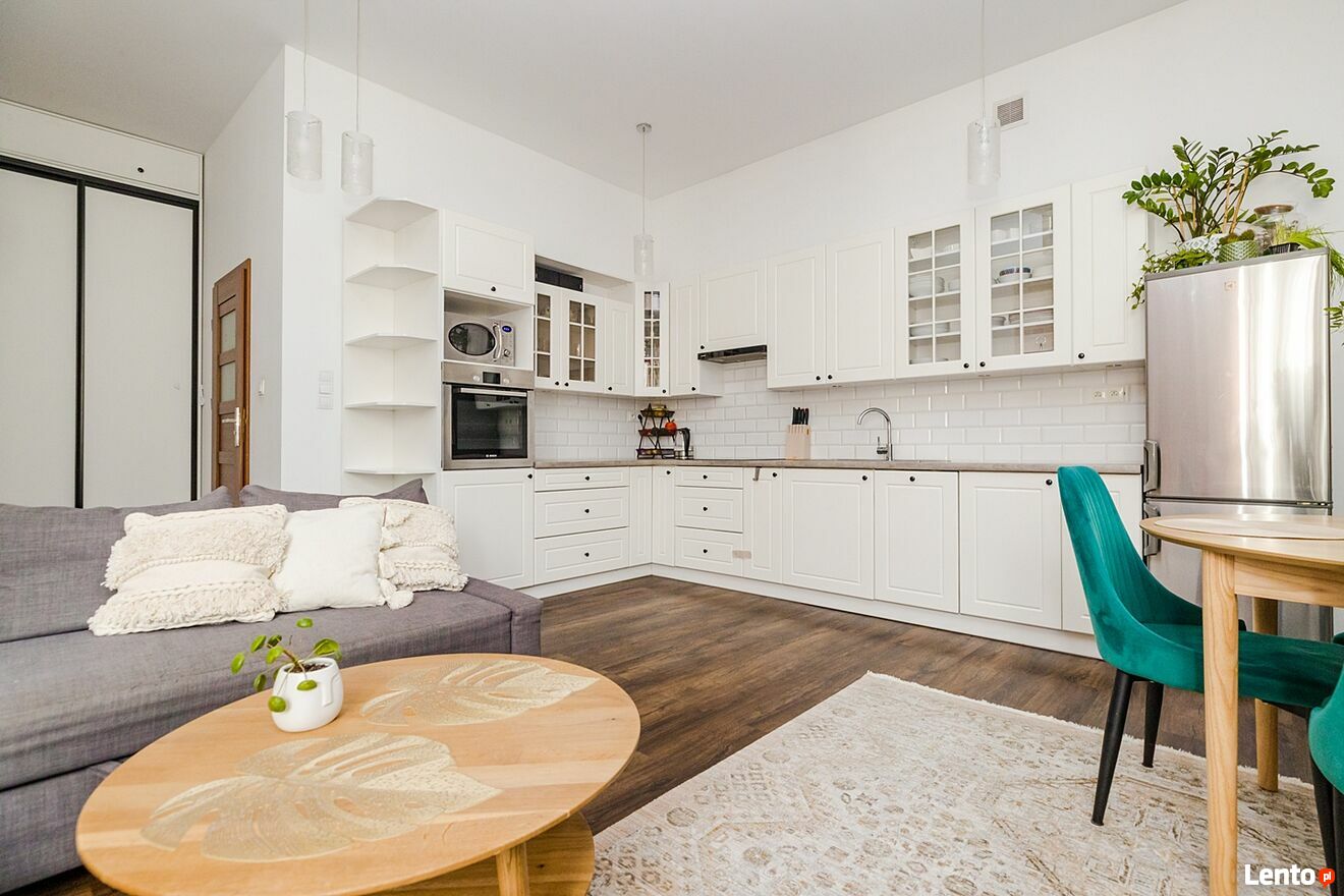 Mieszkanie o podwyższonym standardzie, urządzone z dużym poczuciem estetyki. Oryginalne elementy ceglane w salonie subtelnie nawiązują do pierwotnego wyglądu całkowicie odnowionej kamienicy.