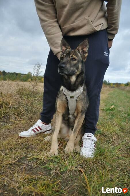 Bardzo ładnie chodzi na smyczy. Czasem zdarzy mu się jeszcze coś poroznosić, jak to psiemu dziecku, ale szybko się uczy.