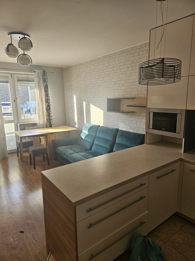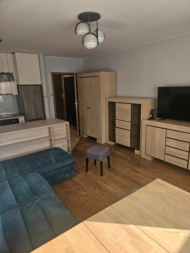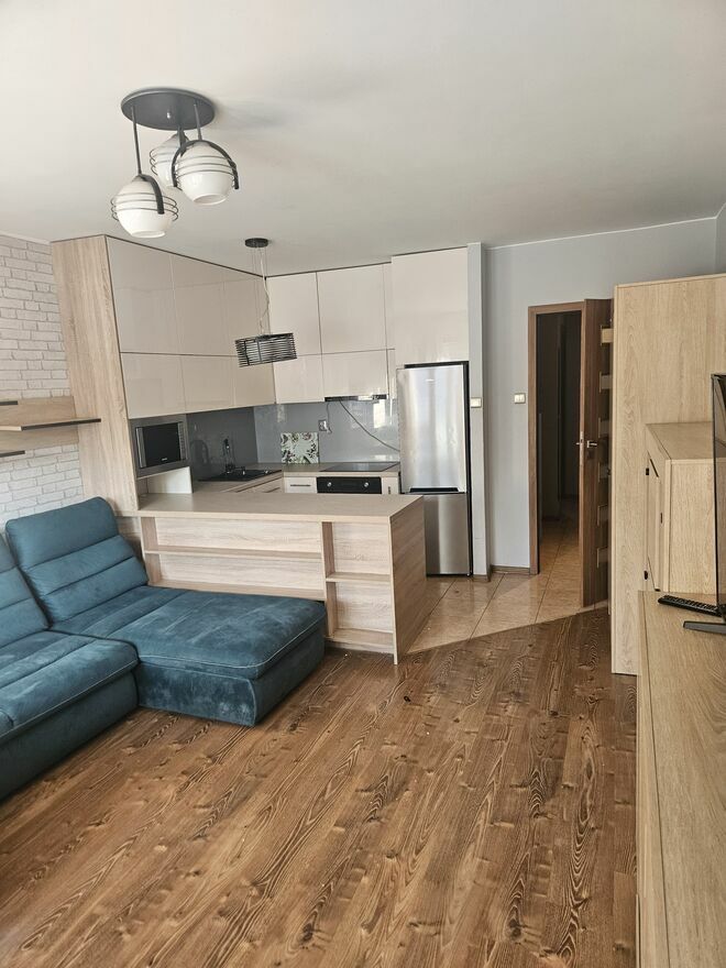 Do wynajęcie dwupokojowe mieszkanie o powierzchni 42 m., składające się z sypialni i salonu z aneksem kuchennym.Wykończenie w wysokim standardzie. W pełni umeblowane. Posiada pralkę, zmywarkę, kuchenkę mikrofalową, telewizor. Mieszkanie posiada balkon, a także piwnicę.Mieszkanie znajduje się na strzeżonym osiedlu.