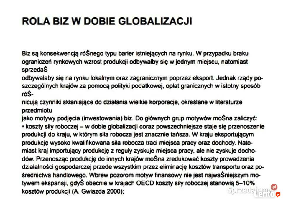 Rola BIZ w dobie globalizacji Praca Zaliczeniowa Studia