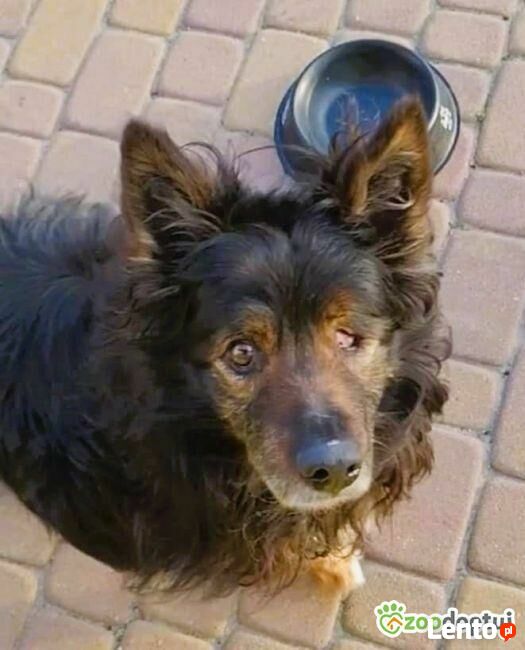 Romuś ma powyżej 12 lat, waży 19 kg. Jest bardzo miłym i poczciwym starszym panem. Zgodzi się z innymi psami, w pierwszym kontakcie się ich boi. U weterynarza dał wszystko, bez problemu u siebie zrobić. Mimo tego, że jest starszy dziarsko chodzi na spacery. Romuś nie ma jednego oczka a na drugie słabo widzi. Nie jest wymagającym psem, spokojny, ciepły kąt, pełna miska i ręce do głaskania wystarczą.