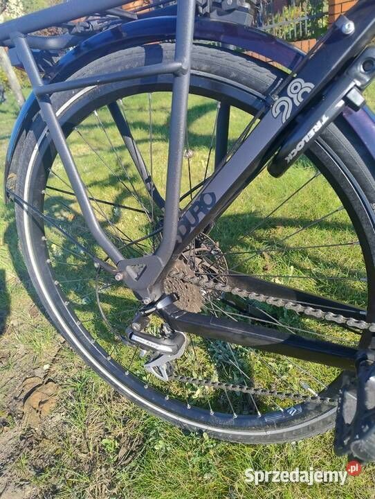 Rower dla osób poszukujących niezawodnego i komfortowego pojazdu na co dzień oraz podczas długich wycieczek. Ten model wyposażony jest w solidną ramę aluminiową, gwarantującą lekką konstrukcję i trwałość, idealną zarówno dla miejskich tras, jak i terenów poza utwardzonymi drogami. Wyposażenie obejmuje wysokiej klasy amortyzator przedni, który absorbuje nierówności, co zwiększa komfort jazdy na różnych nawierzchniach. 28-calowe koła z oponami Schwalbe Road Cruiser zapewniają stabilność i pewność prowadzenia, niezależnie od warunków pogodowych. Bogaty napęd 8-biegowy Shimano Acera umożliwia precyzyjne dostosowanie tempa, a hydrauliczne hamulce tarczowe Tektro T275 skutecznie gwarantują bezpieczeństwo w każdej sytuacji. Wspomaganie elektryczne zamontowane w centralnej części roweru, wspiera użytkownika na każdym kroku, sprawiając, że nawet najdłuższe trasy stają się mniej obciążające. Pojemna bateria Bosch PowerPack 400 Wh, wyjmowana i łatwa do ładowania, zapewnia do 100 km zasięgu na jednym ładowaniu, co czyni ten model niezwykle praktycznym. Dodatkowo, rower posiada funkcjonalny wyświetlacz Bosch Intuvia, umożliwiający bieżący monitoring parametrów. W komplecie znajdują się niezbędne akcesoria – oświetlenie, błotniki oraz bagażnik, co czyni go gotowym do codziennego użytku. To połączenie wytrzymałości, nowoczesnej technologii i komfortu czynią z tego roweru idealny wybór dla osób stawiających na funkcjonalność i ekologię. Praktyczne zalety roweru: markowy, niebanalny wygląd zwracający uwagę, wysoki komfort jazdy, duża moc napędu i duży zasięg do 135 km solidny napęd Bosch z baterią umieszczony centralnie w rowerze wpływa na stabilność jazdy, łatwość prowadzenia roweru pod górkę lub po schodach (przycisk-WALK ASIST), mocna oryginalna ładowarka 4 amperowa pozwala na szybkie ładowanie rower uniwersalny damsko-męski w bardzo dobrym stanie technicznym gotowy do jazdy, nie wymaga żadnych dodatkowych nakładów. SPECYFIKACJA: - aluminiowa rama w rozmiarze L (21“/52,5 cm) - obręcze 28 cala. - opony Schwalbe Roud Cruiser w rozmiarze 28 x 1,6; bieżnik szosowy. - napęd centralny Bosch Performance Line CX 250 W . - bateria litowo-jonowa Bosch PowerPack 400 Wh. - wyświetlacz z manipulatorem Bosch Intuvia. - 4 tryby mocy wspomagania elektrycznego. - asystent prowadzenia roweru WALK ASIST, przycisk 6 km/h. - widelec amortyzowany SR SUNTOUR z regulacją i blokadą skoku. - markowe siodło żelowe Selle&Royal. - napęd i manetki Shimano Acera 1 x 8. - hamulce hydrauliczne tarczowe Tektro. - lusterko wsteczne - oświetlenie fabryczne LED sterowane z pulpitu i zasilane z głównej baterii. - bagażnik. tylny przystosowany do mocowania dodatkowych sakw W zestawie dokumentacja , kluczyki oraz oryginalna mocna ładowarka 4 Amperowa Oglądać można w Kutno.Sprawdź zainteresowanie tym ogłoszeniem
