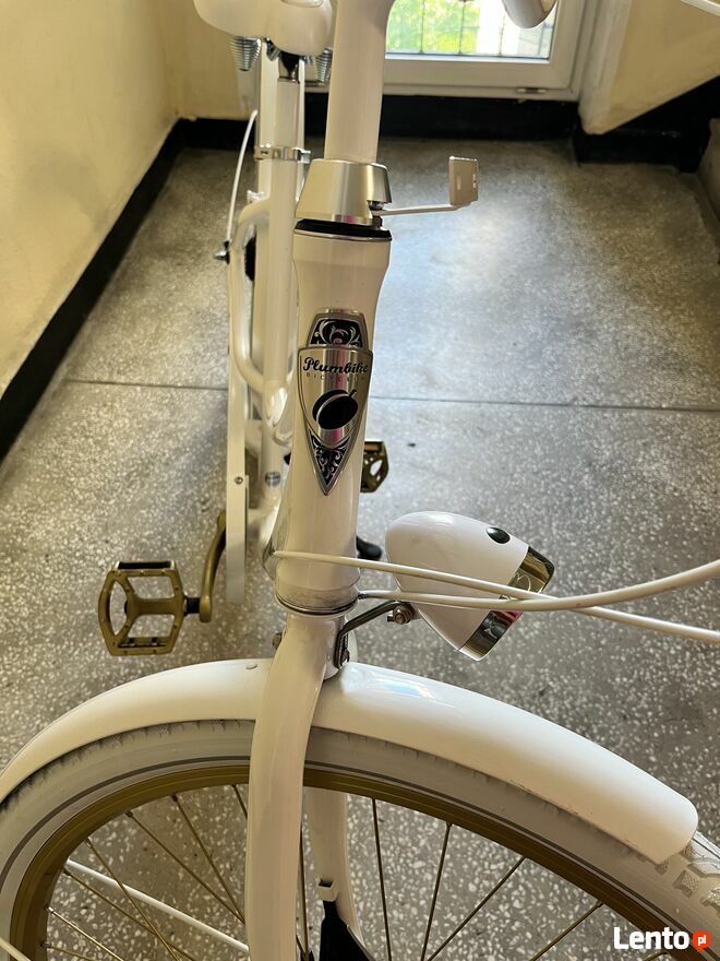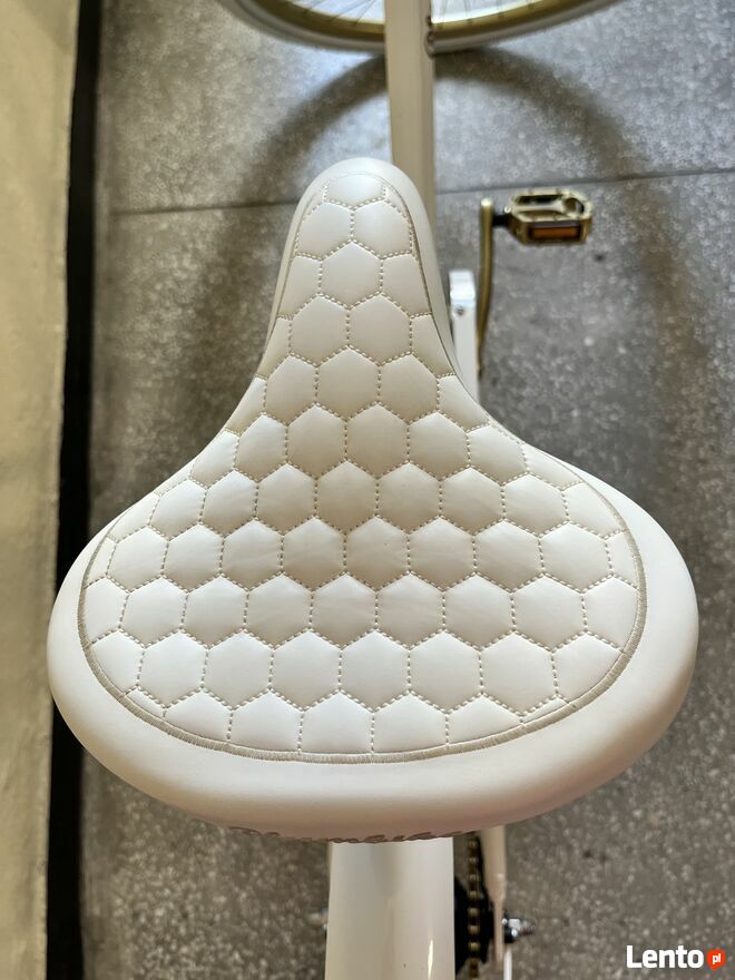 Na sprzedaż biało złoty, 7-biegowy rower DONATELLA CARTIE ze złotym łańcuchem i wygodnym siodełkiem.Koła 28 cali