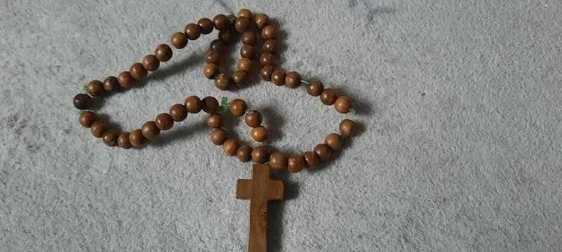 Różaniec -lata 70 XX wieku - Rękodzieło PRL- real fotodługość 30cm