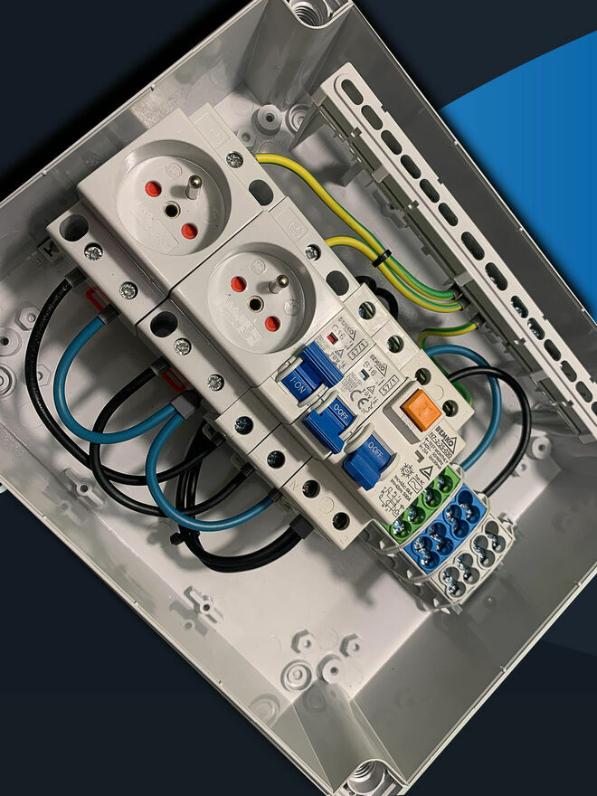 2. Montaż i modernizacja u klienta: Jeśli wolisz, złożę i skonfiguruję rozdzielnicę bezpośrednio w Twoim budynku. Modernizuję również stare tablice bezpiecznikowe (wymiana „korków” na nowoczesne zabezpieczenia).