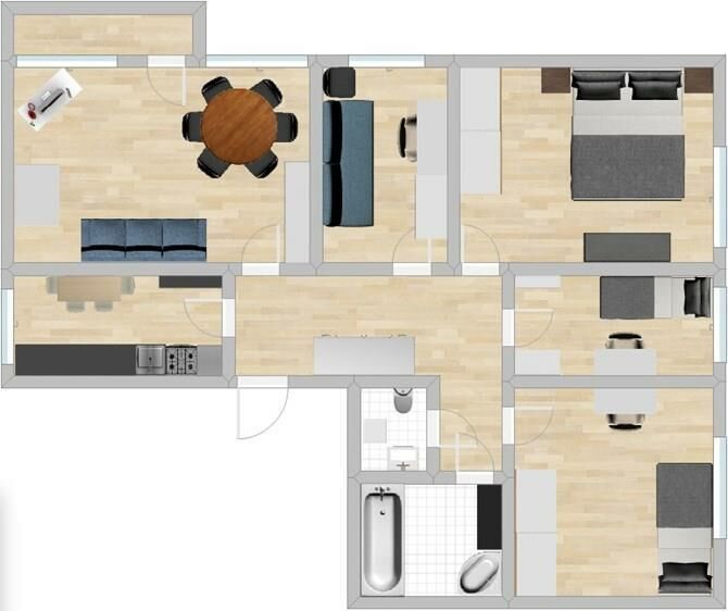 5 niezależnych pokoi, osobna widna kuchnia, łazienka z wanną,