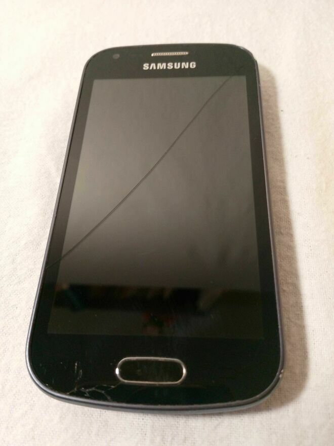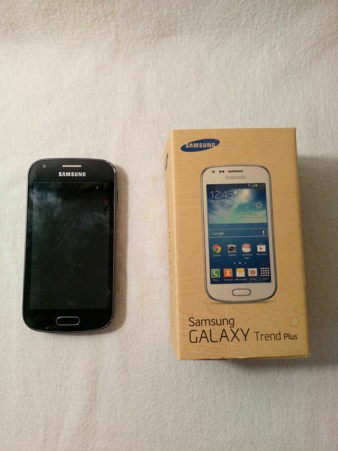 Samsung Galaxy Trend Plus z pudełkiem - brak baterii i ładowarki. Pęknięcie ekranu widoczne na zdjęciu.Nie mogę potwierdzić czy działa czy nie.