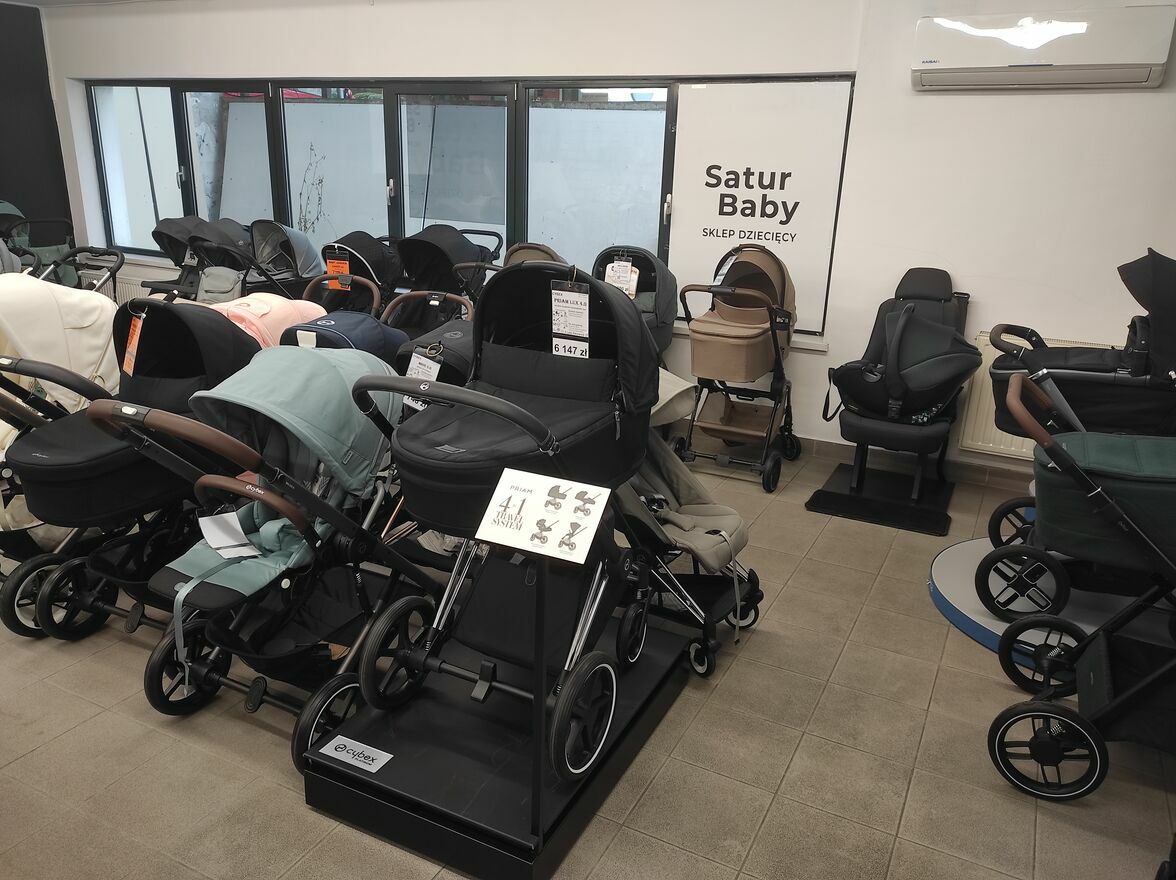 SaturBaby Ursynów – profesjonalny sklep dla rodziców i maluchów!Zapraszamy do naszego salonu na Pasażu Stokłosy 11, gdzie czeka na Państwa duży wybór wózków dziecięcych, fotelików samochodowych oraz akcesoriów dla niemowląt. Każdy produkt można obejrzeć i przetestować na miejscu, a nasi doświadczeni doradcy pomagają wybrać najbezpieczniejsze i najwygodniejsze rozwiązania dopasowane do wieku dziecka i potrzeb rodziny. Przymierzamy foteliki bezpośrednio w samochodzie oraz prezentujemy różnice między modelami wózków, tak aby zakup był w pełni świadomy i komfortowy. Oferujemy produkty najlepszych marek, m.in. Cybex, Maxi-Cosi, Muuvo, Anex, Joie czy Kinderkraft, a wiele modeli dostępnych jest od ręki.