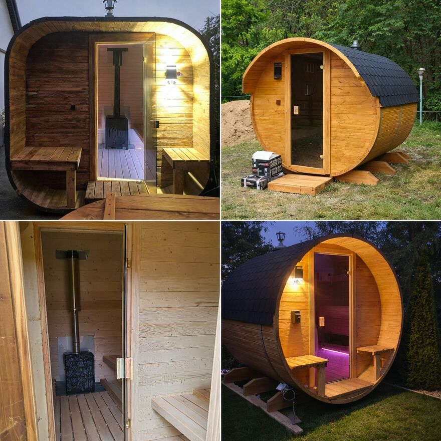 Oferujemy nowoczesne sauny ogrodowe w dwóch wariantach: beczka (ekonomiczna) oraz kwadratowa (premium). Idealne do ogrodu, na działkę lub przy domu – relaks, zdrowie i prywatna strefa SPA.