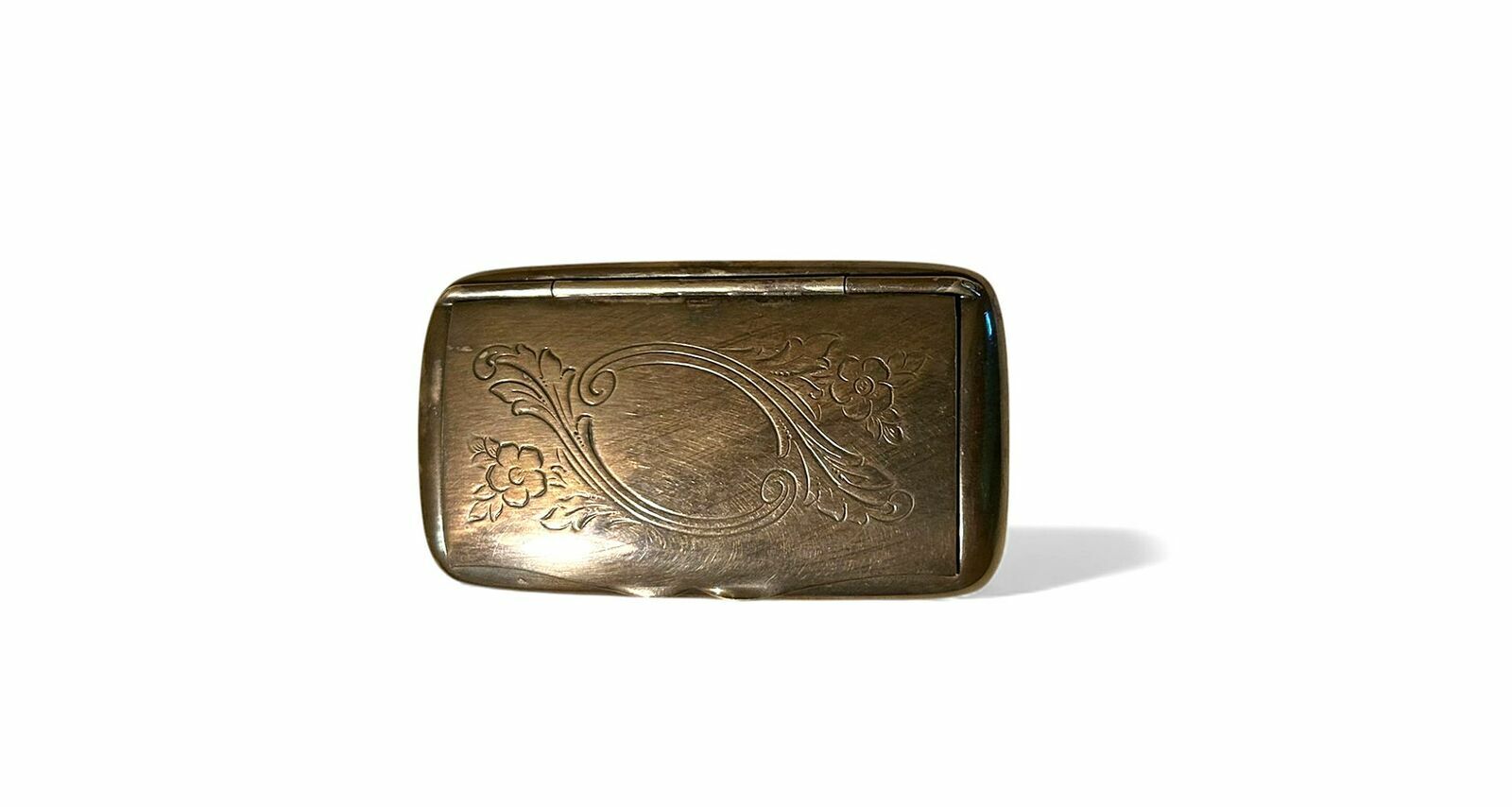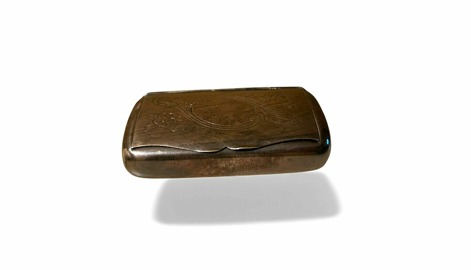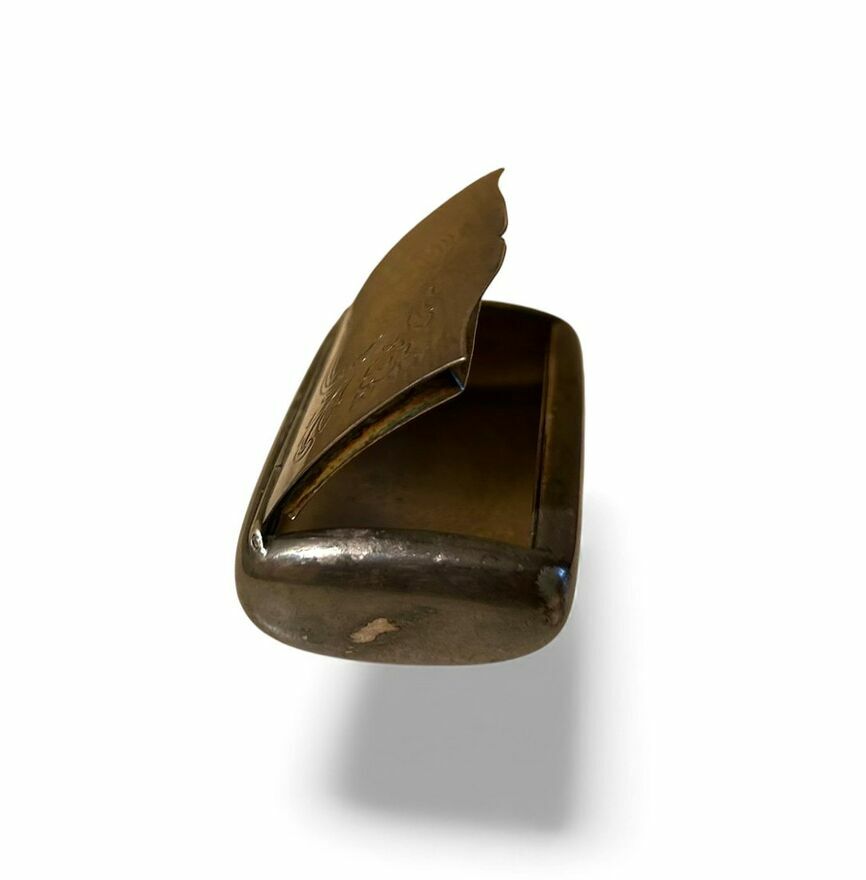 Secesyjna posrebrzana tabakiera ( bądź pigularz )z ozdobnie grawerowanym wieczkiem