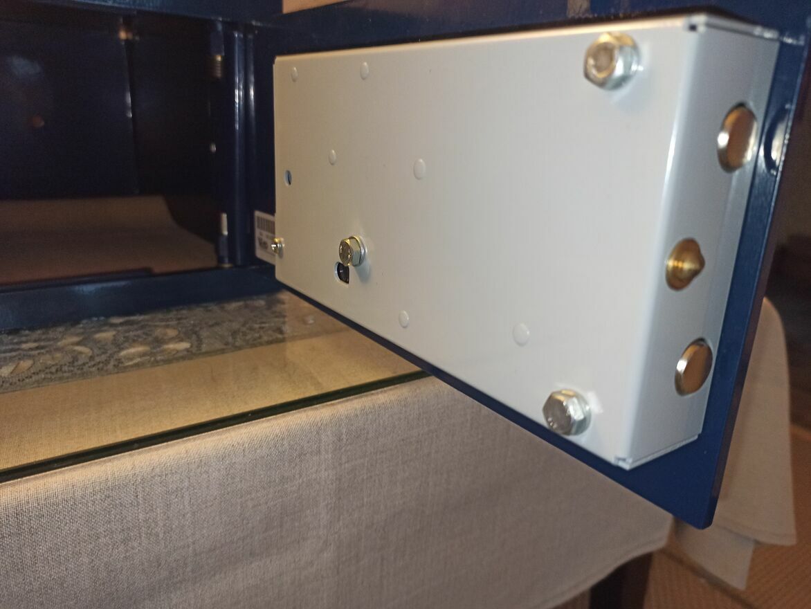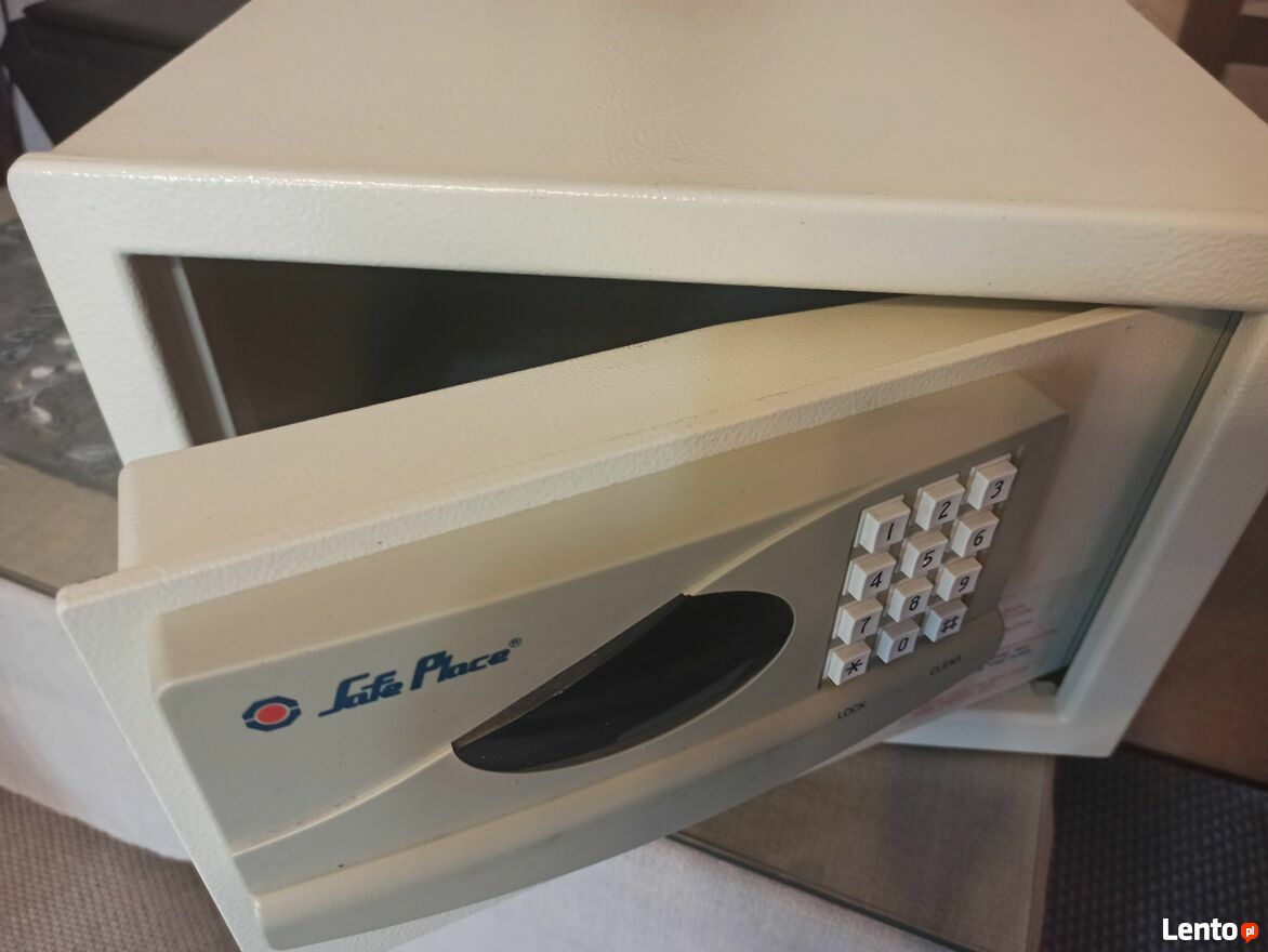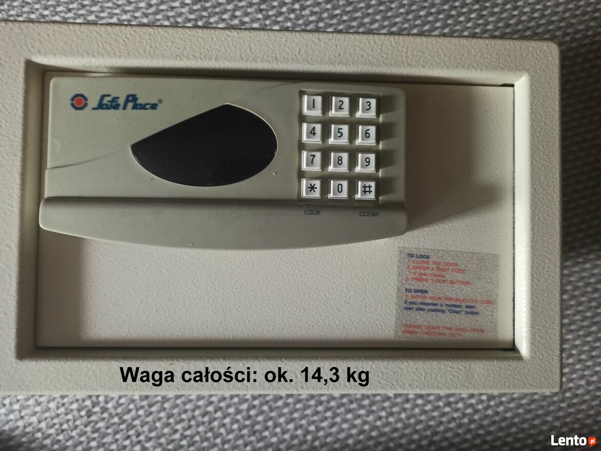 Sejf używany - cena 380 zł.Z powodu awarii klawiatury zmieniono elektronikę umożliwiającą otworzenie sejfu.