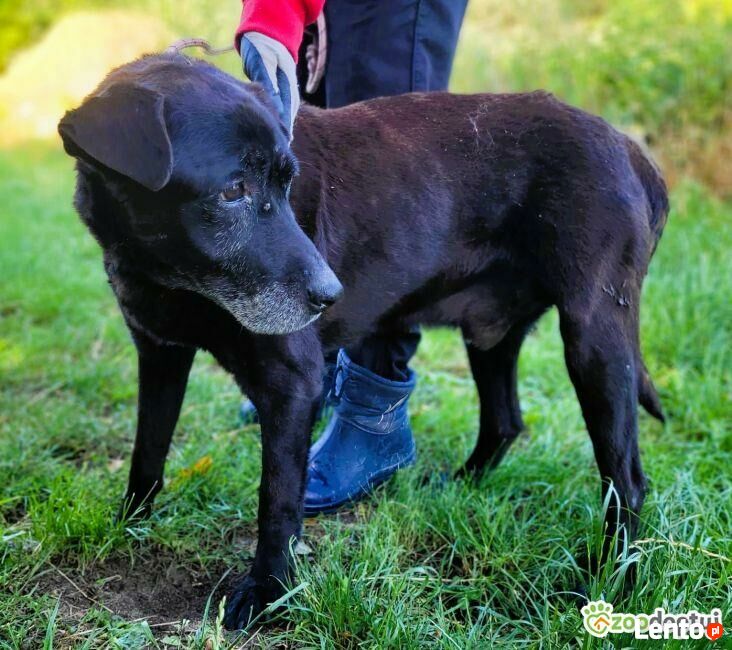 Seniorek - zrezygnowany, poczciwy, skrzywdzony starszy pies przyczołgał się na posesję resztkami sił.. To wrak psa, który z głodu i wycieńczenia nie mógł stanąć na łapy..Nie tak powinna wyglądać psia starość, nie tak...Najwierniejszy przyjaciel człowieka powinien być otoczony miłością i ciepłem swojej rodziny, a tymczasem zostaje wyrzucony na bruk