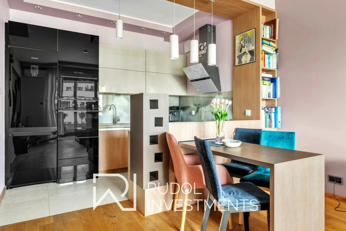 Mieszkanie znajduje się przy Aleja Rzeczypospolitej, w samym sercu Miasteczka Wilanów - nowoczesnej dzielnicy, gdzie dominuje niska zabudowa (maksymalnie 3 kondygnacje), co sprzyja kameralnej atmosferze. To miejsce przyciąga młodych, aktywnych ludzi, ceniących sobie komfort życia w otoczeniu zieleni i nowoczesnej infrastruktury.